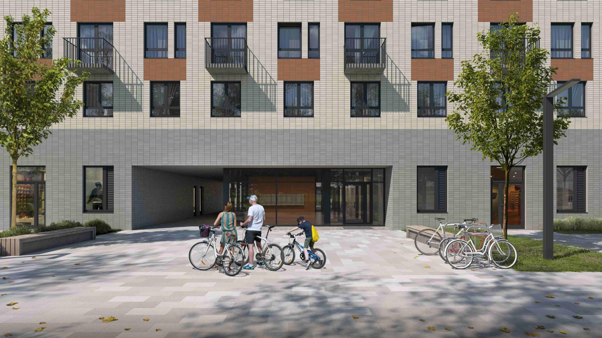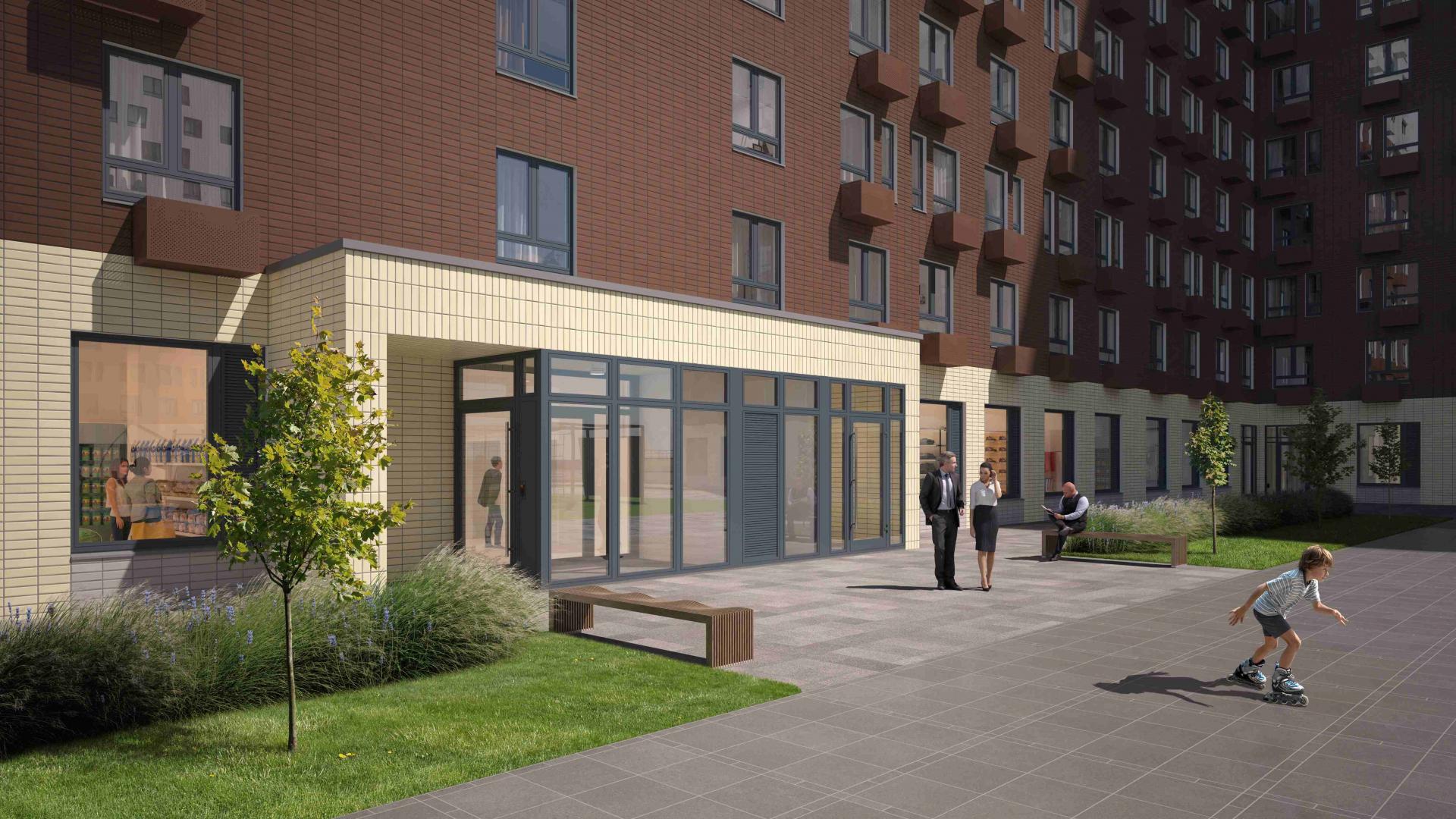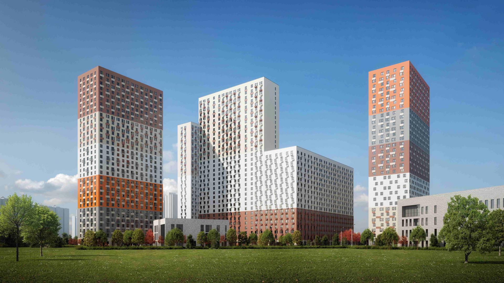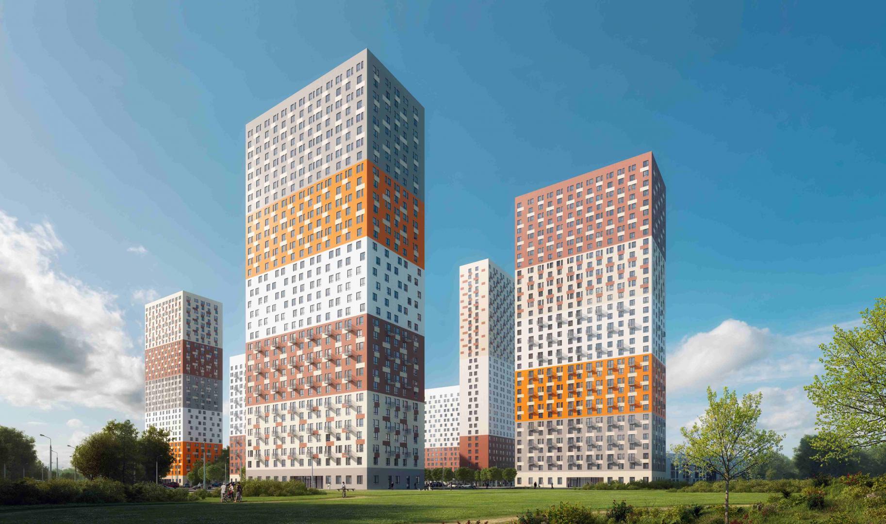 Жилой комплекс возводят по принципу квартальной застройки, которая максимально комфортна для жителей. Т.е дома, высотой от 18 до 33 этажей, расположены таким образом, что образуют внутри себя закрытые безопасные дворы. Каждый двор внутри комплекса озеленён, оборудован детскими спортивными или игровыми площадками. Фасады зданий облицуют навесными панелями пяти различных оттенков. Чтобы избежать нарушения внешнего облика фасадов застройщиком запланированы специальные декоративные корзины для установки кондиционеров. Входы в подъезды расположены на уровне земли без ступеней, для дополнительного удобства мам с колясками и пожилых людей. Светлые холлы со стеклянной дверью, высокими потолками и отделкой стен в светлых тонах. Установлены современные лифты, которые также помогут спуститься на подземный этаж, где расположились парковочные места и индивидуальные кладовые комнаты с высокими потолками для удобного расположения стеллажных систем.